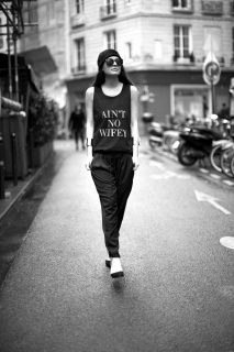 What I’m Wearing: Frassy Rags “Ain’t No Wifey” Tank (COMING SOON), Zara Silk Track Pants, H&M Furry Beanie, ASOS Gold Cuffs & Zara Pointy Heels.