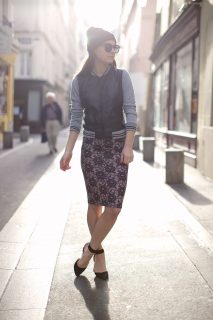 What I’m Wearing: Windsor Store Leather Bomber Jacket, Windsor Store Lace Pencil Skirt & Zara Heels
