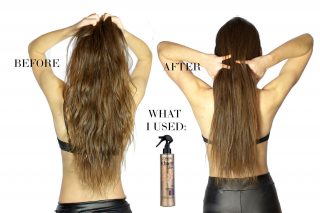 Naturally, my hair is very wavy and usually when I straighten my hair, it looks a little dull and dry, so I was pretty curious to see how well this product would work for me. I spritzed about 5 sprays onto my hair before styling, and yes, after straightening, my hair was noticeably sleeker but also, silkier.