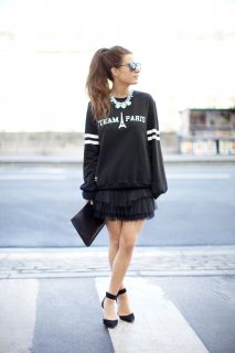 What I’m Wearing: MISBHV Team Paris Sweatshirt, H&M Tutu, Zara Heels, Stradivarius Necklace & Sisley Clutch