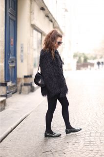 Olive Boutique Pearl Blouse, Topshop Denim Shorts, ASOS Mongolian Faux Fur Coat, Zara Studded Loafers & Raoul Bag