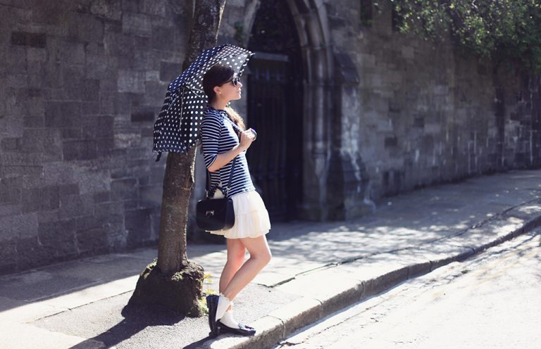 Este es un “post” especialmente emocional para mí, como sabéis, he estado yendo de de país en país por Europa desde que era muy pequeña. Curiosamente, conservo todos estos lugares muy hondo en el corazón pero no he vuelto ni una sola vez. Soy bastante nómada por naturaleza y me es fácil vivir en cualquier parte, a donde me lleven mis pasos y donde haya un ordenador. No olvido estos lugares de mi pasado sino que tengo la cabeza siempre puesta en lo siguiente y irme a un sitio nuevo es un reto y que requiere focalización, así que nunca he tenido mucho tiempo para volver a esos sitios. Pero entonces me fui a Irlanda, por fin volví a un sitio que yo consideraba mi hogar, y fue una experiencia nostálgica y extraña para mí. Durante los dos últimos días de mi viaje allí, volví a Dun Laoghaire, un pueblo costero en las afueras de Dublín donde yo viví con mi familia. Alquilamos una casa de un color vivo amarillo con terraza con vistas al mar y mis hermanos y yo nos íbamos andando al bello castillo que era nuestro colegio. La mayoría de los fines de semana caminábamos por este muelle, el que sale en estas fotos donde estoy yo. Fue maravilloso revisitar, volver a caminar y re-descubrir estos lugares de mi infancia, sitios que yo recordaba muy intensamente. Incluso pude volver a ver a un amigo con el que sigo en contacto durante muchos años pero que no había vuelto a ver desde que era joven. Mientras me tomaba un café con él, pensaba qué locura era estar aquí bebiendo café juntos. Charlando como si no hubiera pasado el tiempo, más del que yo podía de manera cómoda asimilar sin sentirme totalmente desbordada. Es importante celebrar tu pasado, repasar todas las cosas que te han ido gradualmente formando como persona hoy. Y, aunque no tengo raíces en Irlanda o en cualquiera de los otros países que yo considero mi hogar, todos me pertenecen de una manera u otra. Sea lo que sea que te haya pasado en la vida te pertenece. ¿No es ése un pensamiento hermoso? Así que házlo tuyo, celébralo, deja que te alimente. Saluda tu pasado desde donde estás ahora, es un consuelo que yo agradecí mucho durante mis paseos por este pueblo precioso que amé de niña.