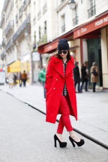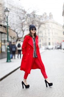 Red on Red, hey bright colours keep you warmer in the winter. I almost look like Where’s Wally or maybe some sort of old-school cartoon version of a burglar, but whatever! Busy week, but the sun is out and this afternoon, I was interviewed in my new apartment for French TV Fashion Channel, Stylia. Not sure when it will be broadcasted, but I will def. be sharing the footage on my blog sometime in the near future! More tomorrow! Photos: Anastasia Nielsen