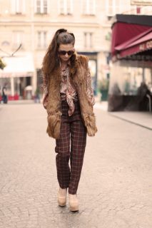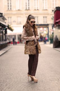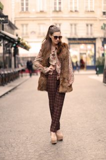 What I’m Wearing: Vintage Fur Gilet, Vintage Paisley Silk Blouse, Vintage Plaid Trousers & Zara Shoes