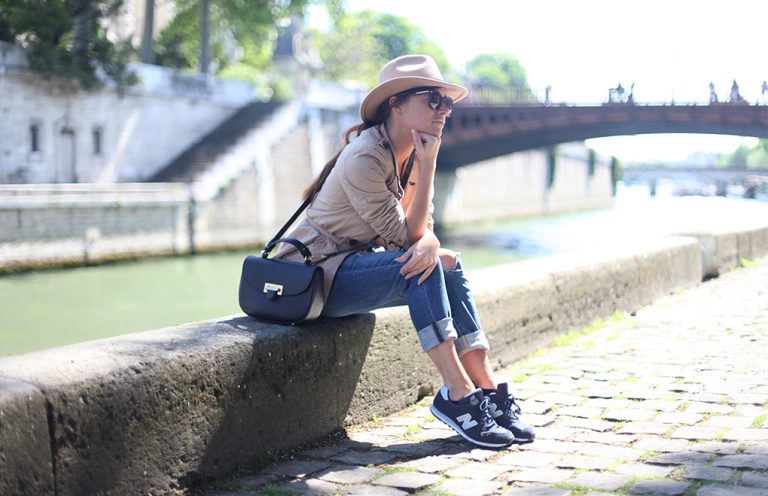 What I’m Wearing: Tally Weijl Trench, Boohoo Fedora Hat, AG Boyfriend Jeans, ZeroUV Sunglasses, Navy New Balance via Bank Fashion & Aspinal of London Saddle Bag, Travel Wallet & Heart Coin Purse.